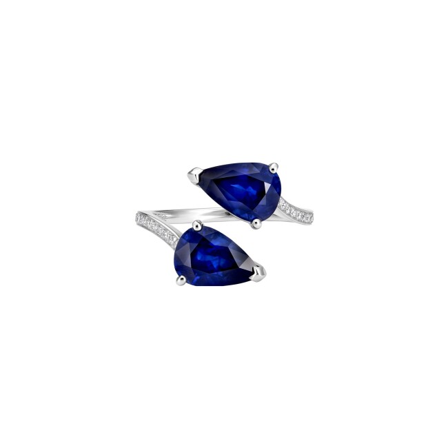 Micropavés Toi & Moi ring sapphires diamonds white gold