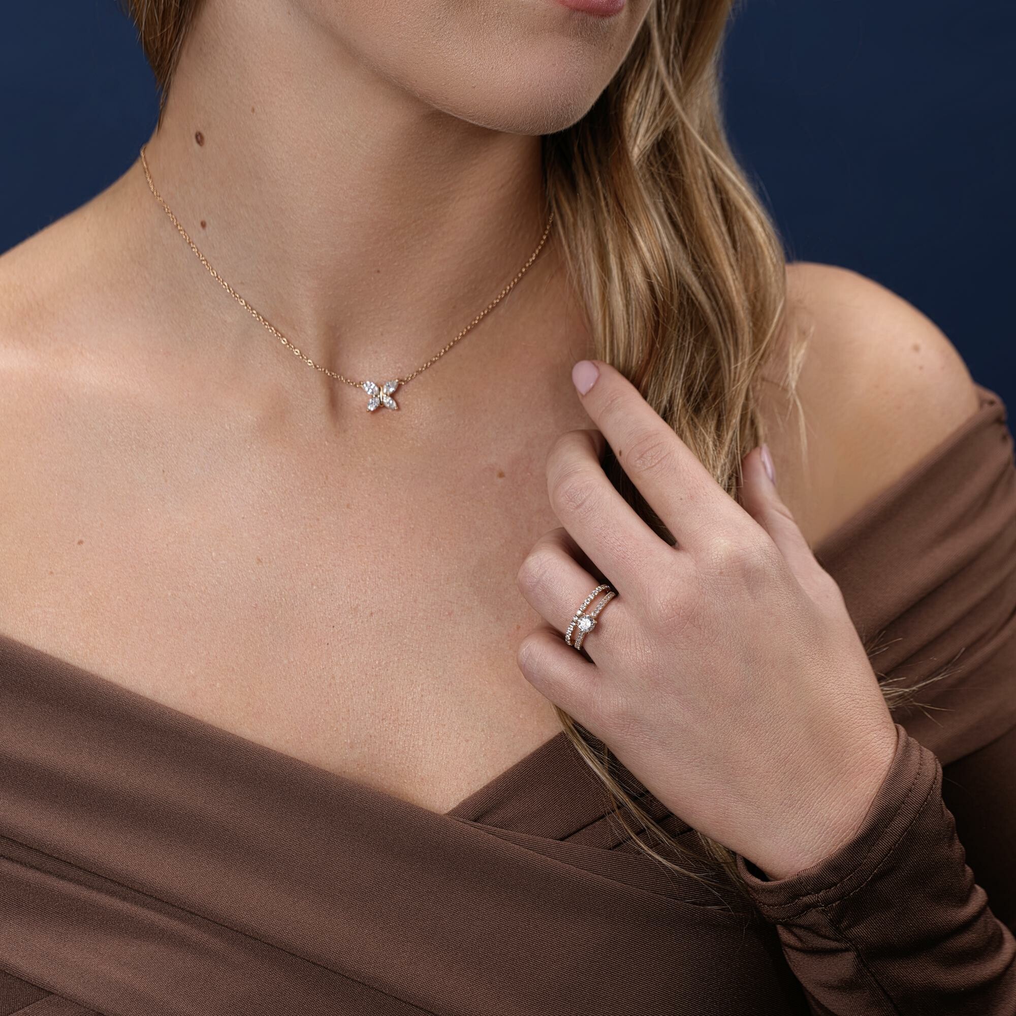 Bride solitaire ring diamonds pink gold