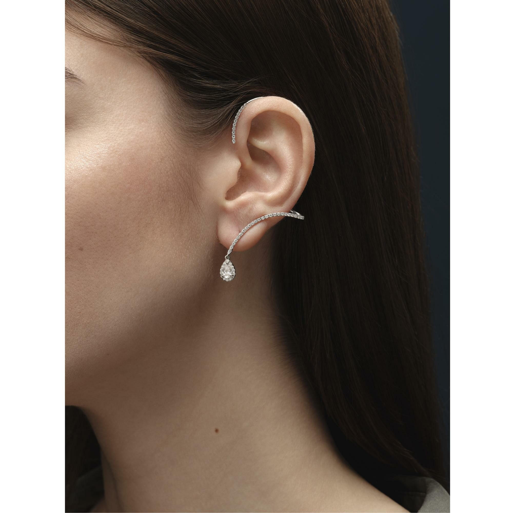 Pear-shaped diamond ear climber white gold