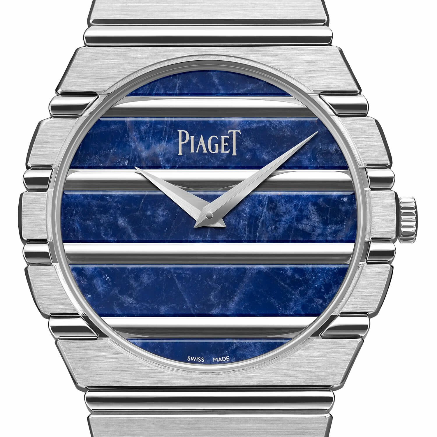 Blue sodalide and 18K white gold dial.