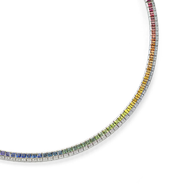 Rainbow Collier diamants saphirs or blanc