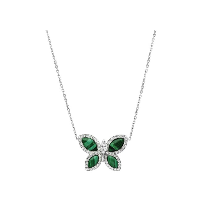 Papillons Floraux Pendentif malachite diamants or blanc