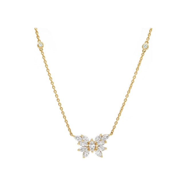Papillons Pendentif Papillon Onze navettes diamants or jaune