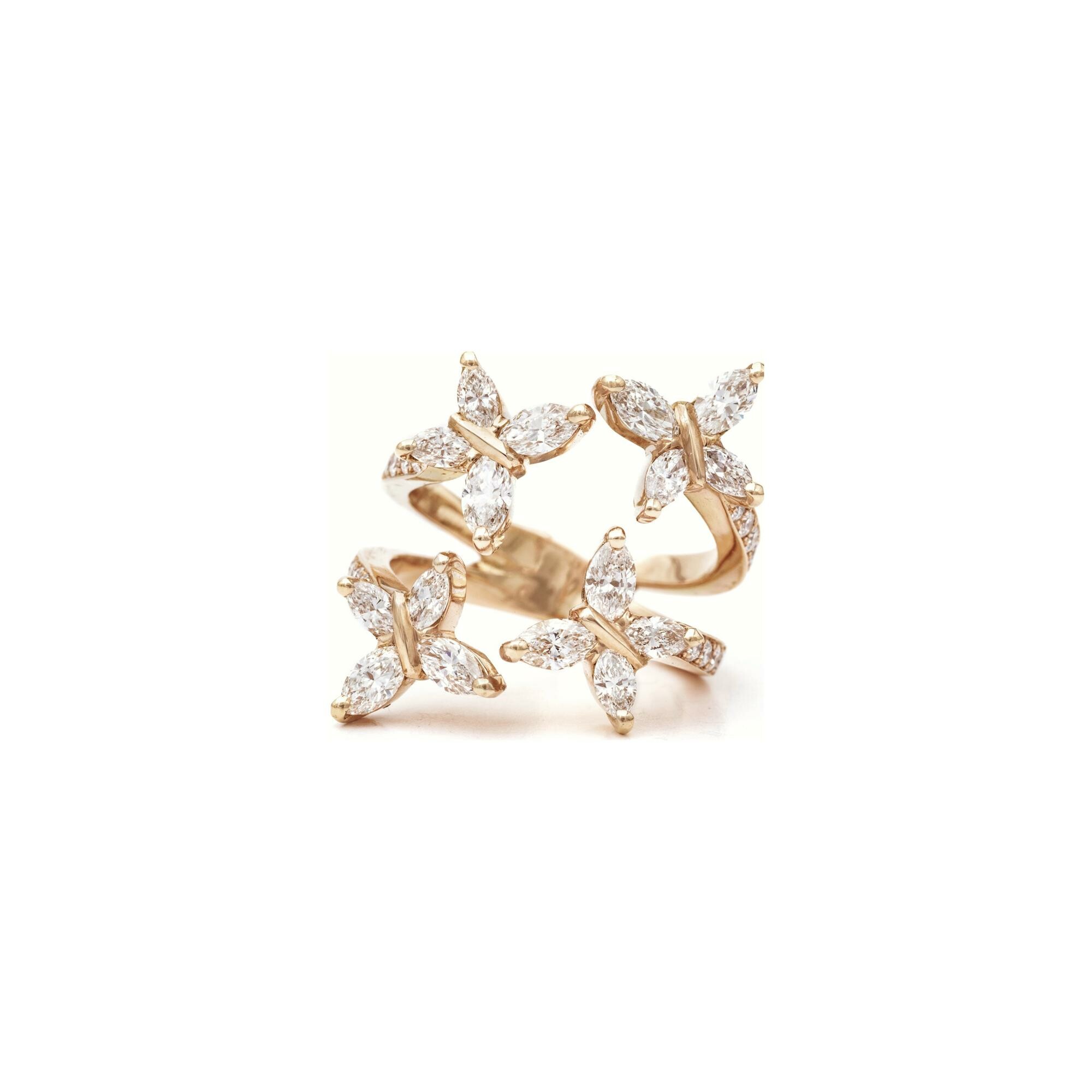 Bague Quatre Papillons diamants or rose