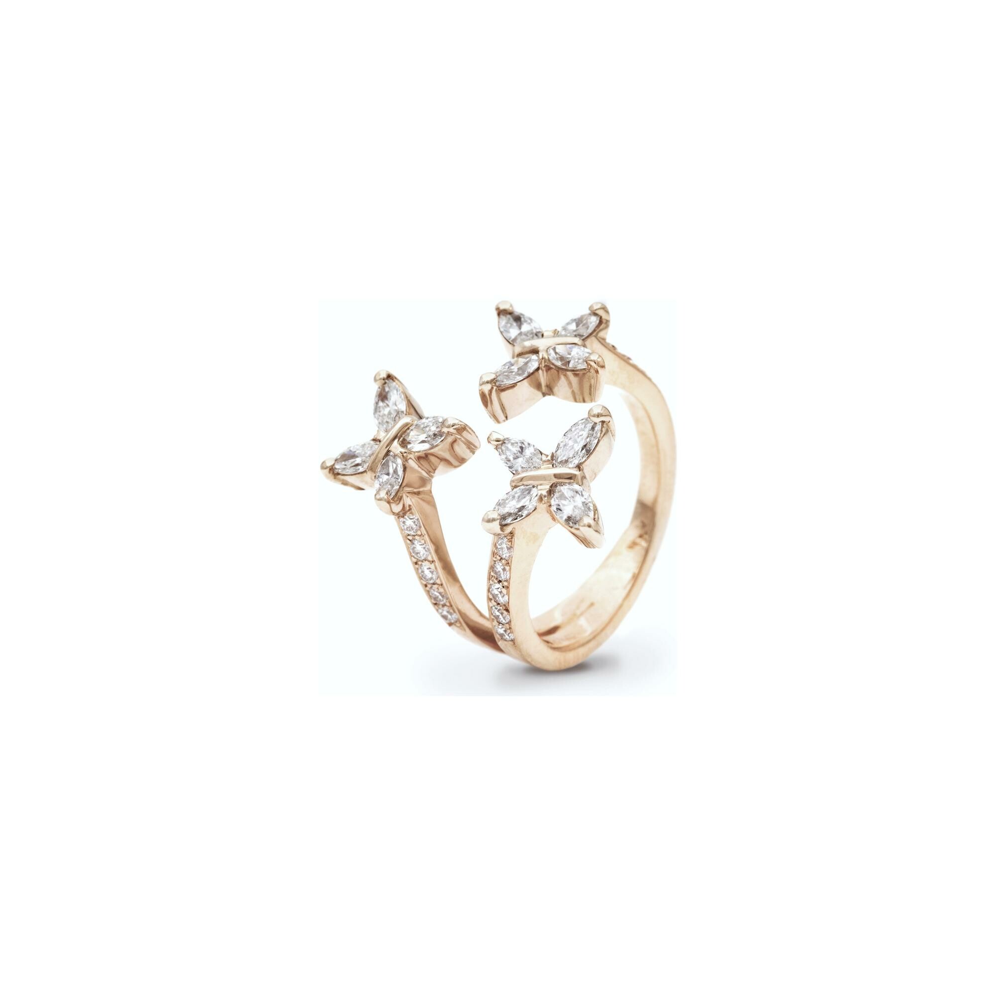 Bague Trois Papillons diamants or rose