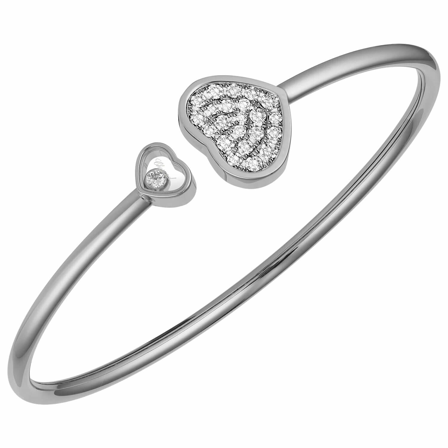 Bracelet Jonc Chopard Happy Hearts en or blanc et diamants (S)