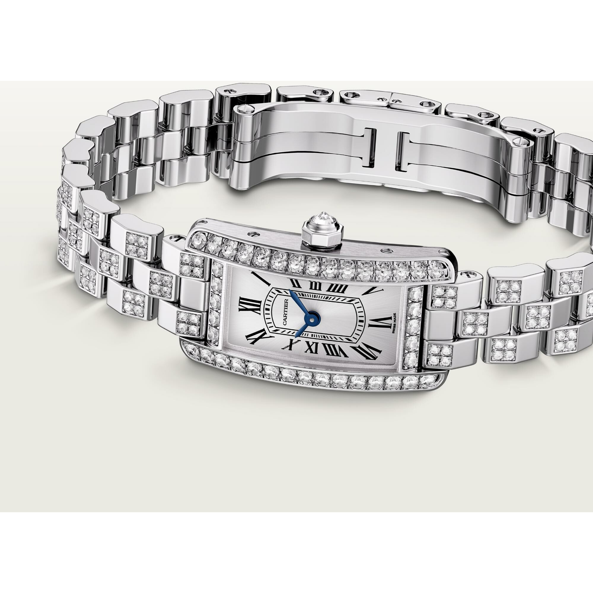 Tank Montre Tank Must Grand modèle, mouvement quartz, acier, diamants, cuir