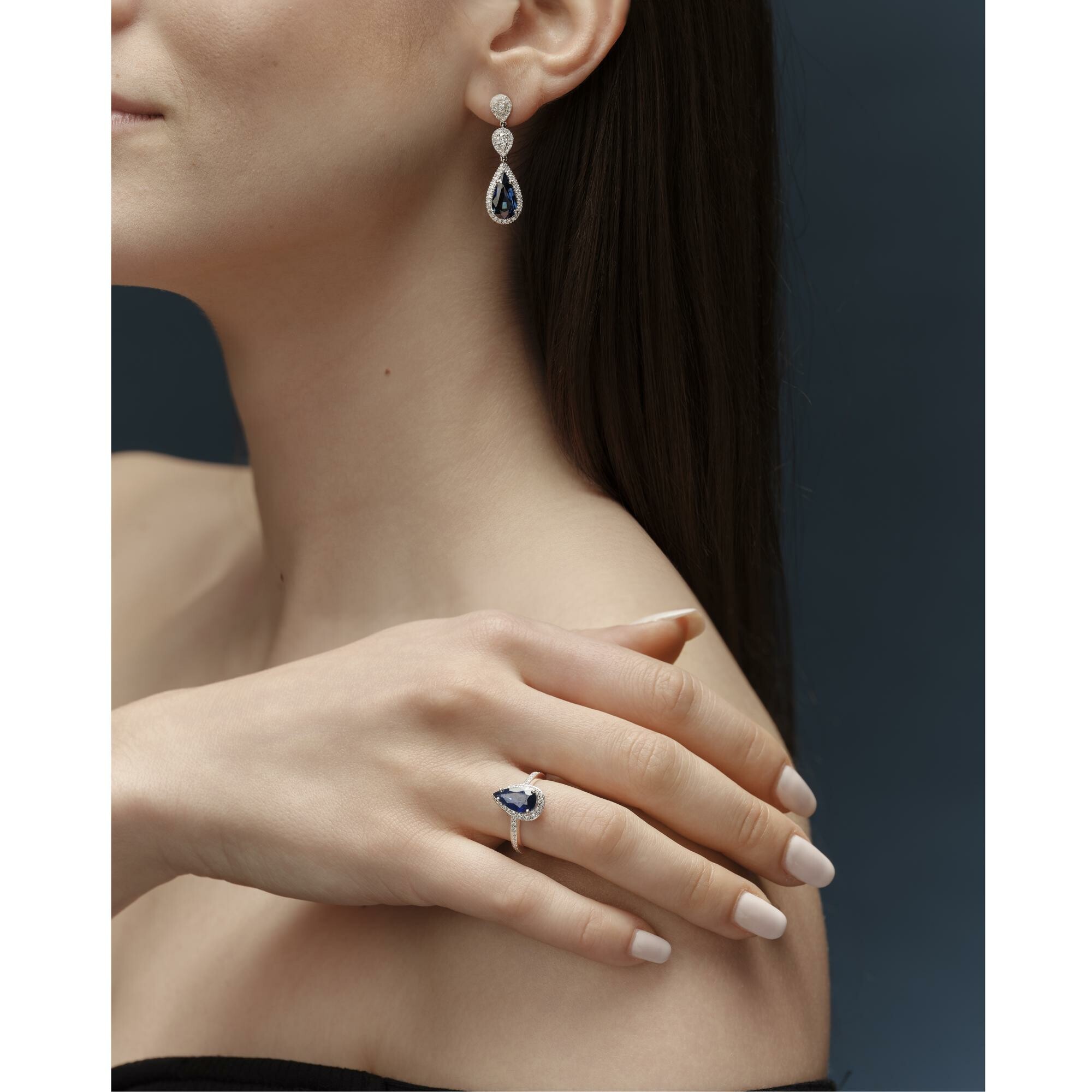 Solitaire saphir diamants or blanc
